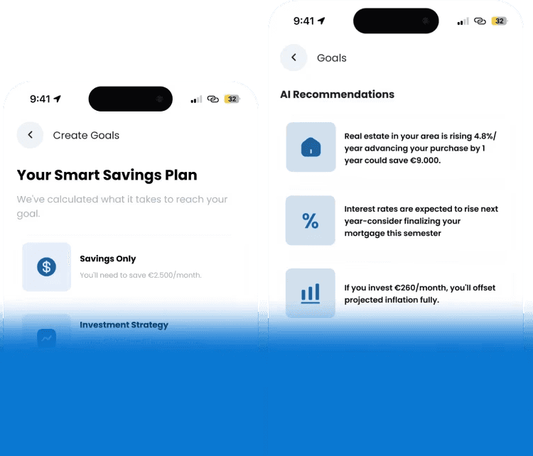 Receive intelligent, personalized recommendations designed to help you make better financial decisions. Gain clear, practical insights into how you spend, save and invest. Improve your financial behavior continuously with guidance that adapts to your real-life goals and habits.